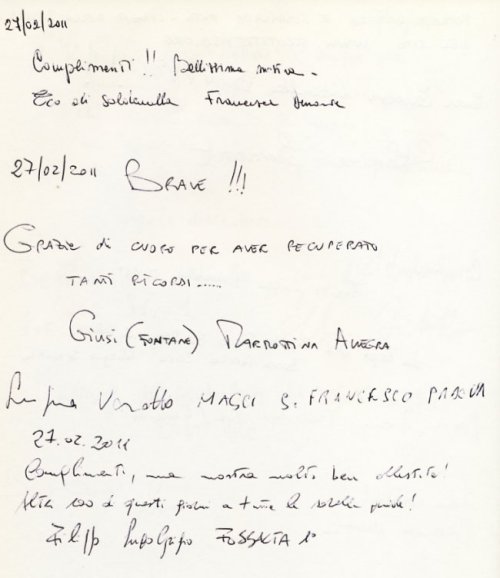 Riportiamo il libro della mostra, con pensieri e apprezzamenti che i visitatori hanno voluto lasciare