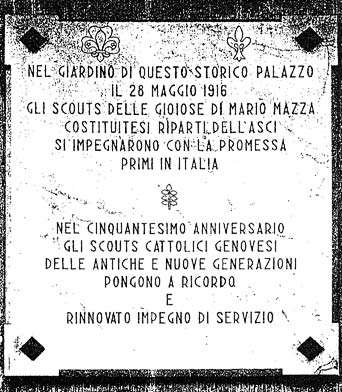 Lapide a ricordo della fondazione dello Scoutismo Cattolico Italiano da parte delle Liguri Gioiose