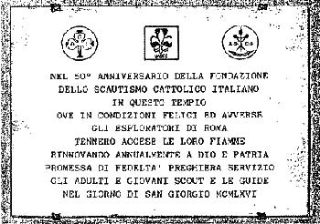 poterono riaprire definitivamente le sedi. Fu costituito il Commissariato Centrale con la sollecitazione di mons. Montini, allora Sostituto della Segreteria di Stato di Pio XII e futuro Papa Paolo VI, con la nomina di don Sergio Pignedoli ad assistente centrale, In breve si riaprirono i vecchi Riparti, se ne fondarono di nuovi e nel 1945, dopo la liberazione e la fine del conflitto, il movimento si diffuse rapidamente in tutta la penisola. I giovani dell’A.S.C.I. e le giovani dell’A.G.I., rappresentarono degnamente l’Italia nelle “Jamboree Internazionali”, così come si fecero notare nel volontariato con l’opera disinteressata dei loro “Rovers” accorsi in sostegno delle popolazioni disastrate dalle sciagure più gravi, meritandosi la riconoscenza del Paese, espressa dalla concessione, dal Ministro degli Interni, della Medaglia di bronzo |