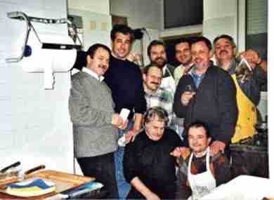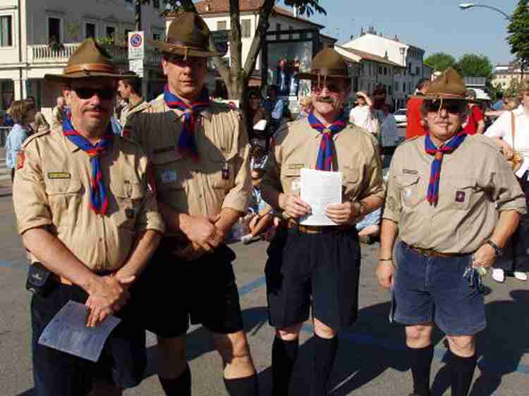 | 2003 - Pattuglia cucina al lavoro (Buti seduto al centro) | 2007 - Centenario dello scautismo a Treviso (da sx Maurizio Depolo, Marco Guerra, Luigino Biscaro, Enzo Lanzza "Buti") | |