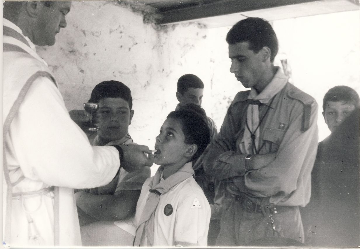 | 1966 Vacanze di Branco di Arabba - Oscar tra Bruno Benvenuti e Don Corrado Ghedin | 1966 Vacanze di Branco di Arabba - Oscar tra i lupetti dopo l'alzabandiera del mattino | |
