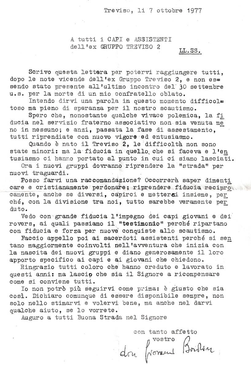 Riportiamo una lettera che don Giovanni ha scritto nel 1977 a tutti capi del Grupppo TV 2° nel momento in cui dallo stesso Gruppo sono nati il TV 3° e il TV 7°:
