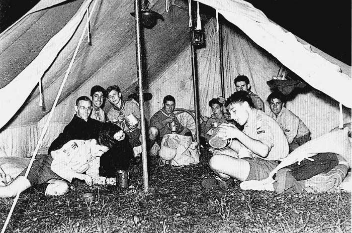Ore 20.30 — Gran bivacco con fuoco da campo, esecuzione di