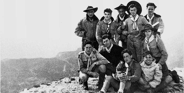 il nome di “STELLA ALPINA” ed era così composta: Biscaro Capo pattuglia, Monti, Forner, Meneguzzi, Annibale L., Piaser. Motto della pattuglia “SEMPRE AL SOLE”. Gli incontri di Clan e di pattuglia avvenivano sempre con continuità e nel pieno rispetto dei tempi e dei programmi. Molte furono le uscite, durante l’anno, anche della durata di due giomi, Fra queste particolarmente indicativa fu quella a livello regionale del 24/5/1952 sul monte Pasubio: Dal carnet del capo pattuglia leggiamo. “Rovers del Clan di Treviso partecipanti 15. Ore 19 partenza dalla stazione ferroviaria di Treviso con arrivo a Vicenza alle 20.40 e immediata partenza per Schio. A Schio siamo stati accolti dal Commissario di settore in un cortile presso Istituto dei Salesiani, il pernottamento avvenne nelle camerette dell’istituto stesso. Sveglia alle ore 4 e partenza con un’autocorriera fino alla località Ponte Verde, di seguito a piedi fino a Valle Xomo dove alle ore 8,30 Messa da campo e prima colazione. Successiva camminata fino al rifugio Papa, attraversando 48 gallerie lunghe e buie, ore 12 arrivo alla meta. Tutto il pomeriggio è stato dedicato alla perlustrazione del Dente Austriaco ed Italiano, ritenuti due punti strategici |