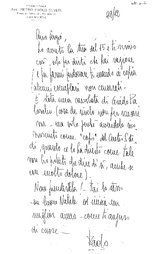 Sono lettere di varie persone intervenute o che intervengono nel confronto: Romano Forleo, PierPaolo Severi, Sergio Sorgato, Attilio Grieco, GianCarlo Lombardi.