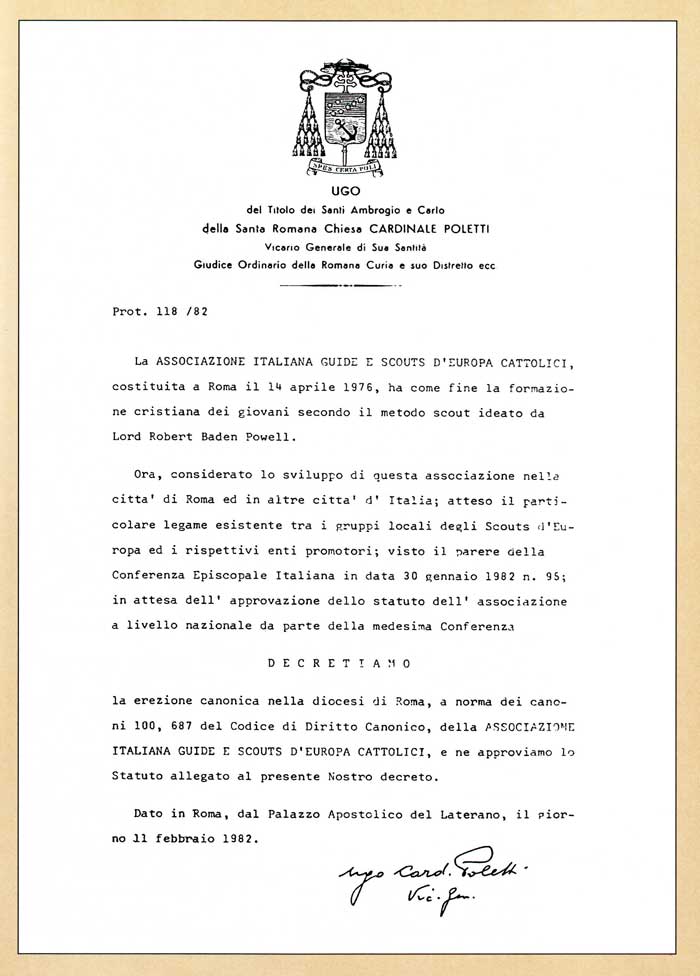 Apri/Chiudi paragrafo Decreto di erezione canonica SdE - Card. Ugo Poletti - 11 febbraio 1982