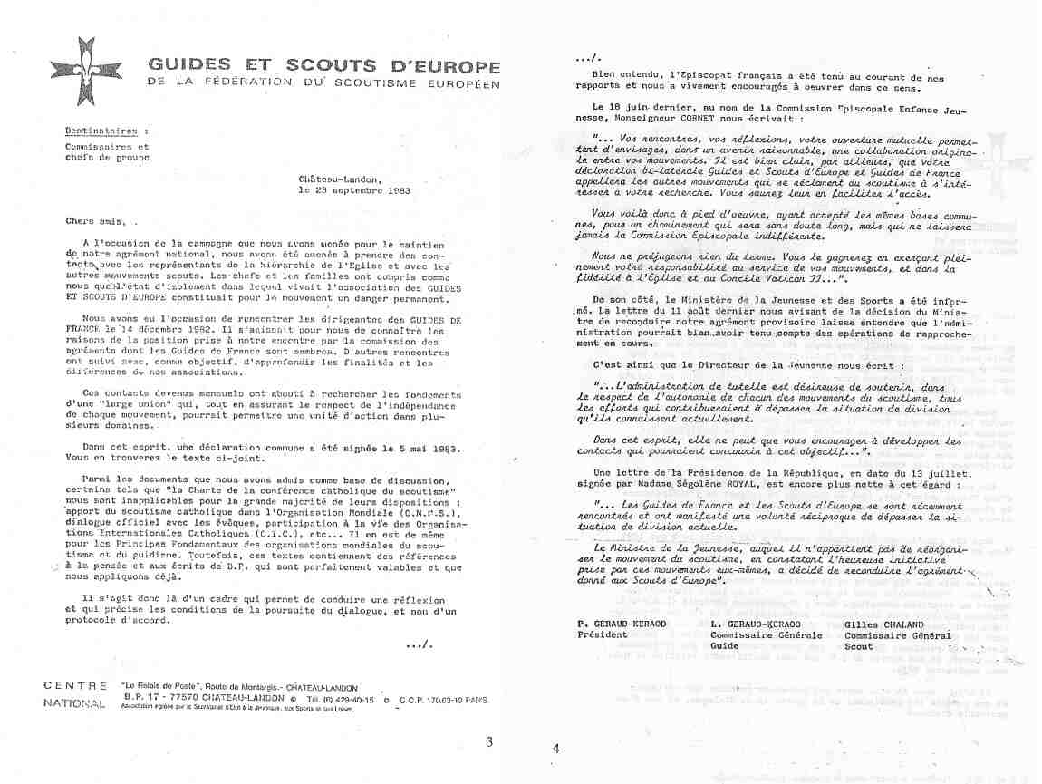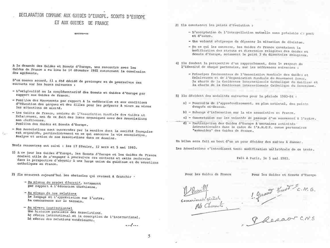 Apri/Chiudi paragrafo Declaration Comune SdE francesi e Guides de France - 5 maggio 1983
