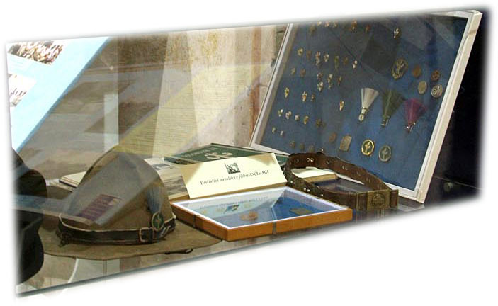 distintivi in metallo e piumini da cappellone, fibia dell'AGI