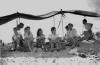 Due sono stati i campi effettuati in quegli anni: uno a Brava di ben 24 giorni. Fu montato in alto sulle dune a metà strada tra la Missione Cattolica e il campo che gli scouts avevano sistemato, più giù, in una radura dove c’era qualche albero e un po’ di verde: un’oasi. Aveva tutto: una grande tenda dove dormire, una dove mangiare, la cucina, la tenda per la latrina (debitamente montata sottovento), furono scavati, come da regolamento, i canaletti tutto intorno alle tende e, al centro campo, una lunga asta per l’alza e l’ammaina bandiera (italiana naturalmente) che veniva fatta, a suon di fischietto, ogni mattina e ogni sera. Gli scouts furono d’aiuto per la sistemazione. |