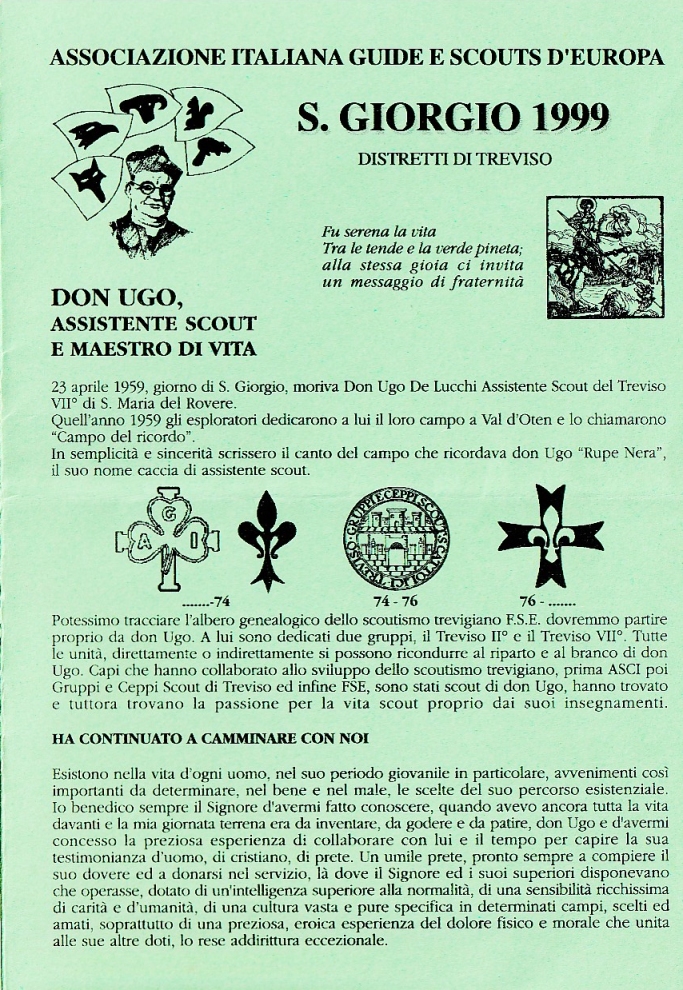 Il distretti di TREVISO per il S.Giorgio del 1999 hanno diffuso questo ricordo di Don Ugo de Lucchi nel 40° della sua scomparsa