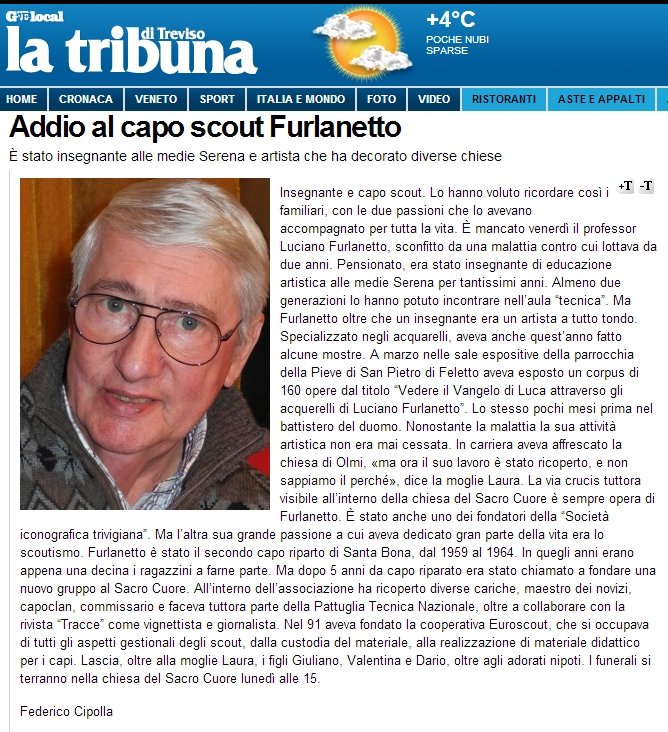 - Dicembre 2012  presso il battistero del Duomo di Treviso "Vedere il Vangelo di Luca attraverso gli acquerelli di Luciano Furlanetto” esposizione di 160 illustrazioni
