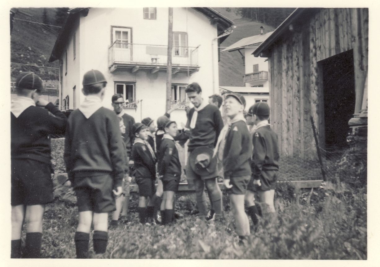 | 1966 Vacanze di Branco di Arabba - Oscar (secondo da destra) tra i Vecchi Lupi | 1966 Vacanze di Branco di Arabba - Oscar all'alzabandiera del mattino | |