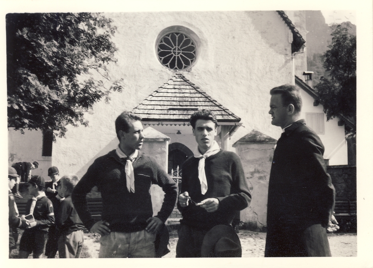 | 1966 Vacanze di Branco di Arabba - Oscar tra Bruno Benvenuti e Don Corrado Ghedin | 1966 Vacanze di Branco di Arabba - Oscar tra i lupetti dopo l'alzabandiera del mattino | |