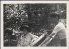 5-20/07/68 - Riparto Fontane - Auronzo (BL), Palus S. Marco Campo dei fuochi lontani "Giornata con i genitori: la mamma di Giuliano Vettori con il cappello in mano, la zia e la nonna si riparano e si siedono sul tavolo di squadriglia"