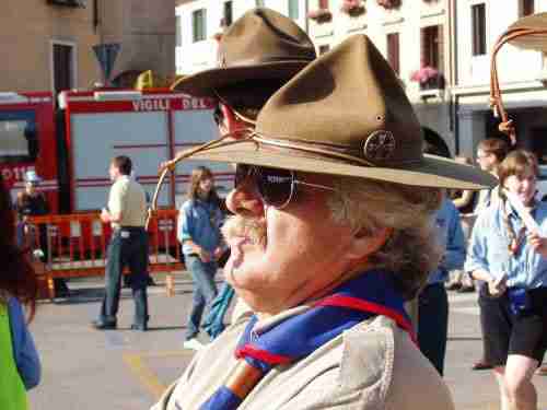 | 2003 - Pattuglia cucina al lavoro (Buti seduto al centro) | 2007 - Centenario dello scautismo a Treviso (da sx Maurizio Depolo, Marco Guerra, Luigino Biscaro, Enzo Lanzza "Buti") | |